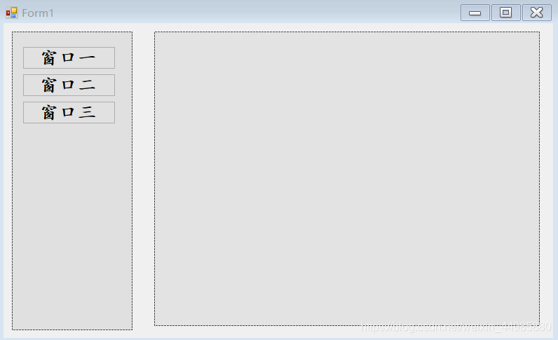 1、新建一个主窗体并在其中放置适当的控件,包括进行切换的按钮和显示窗体的panel容器,在这里要注意:将要显示的子窗体就是在该panel容器中显示的,