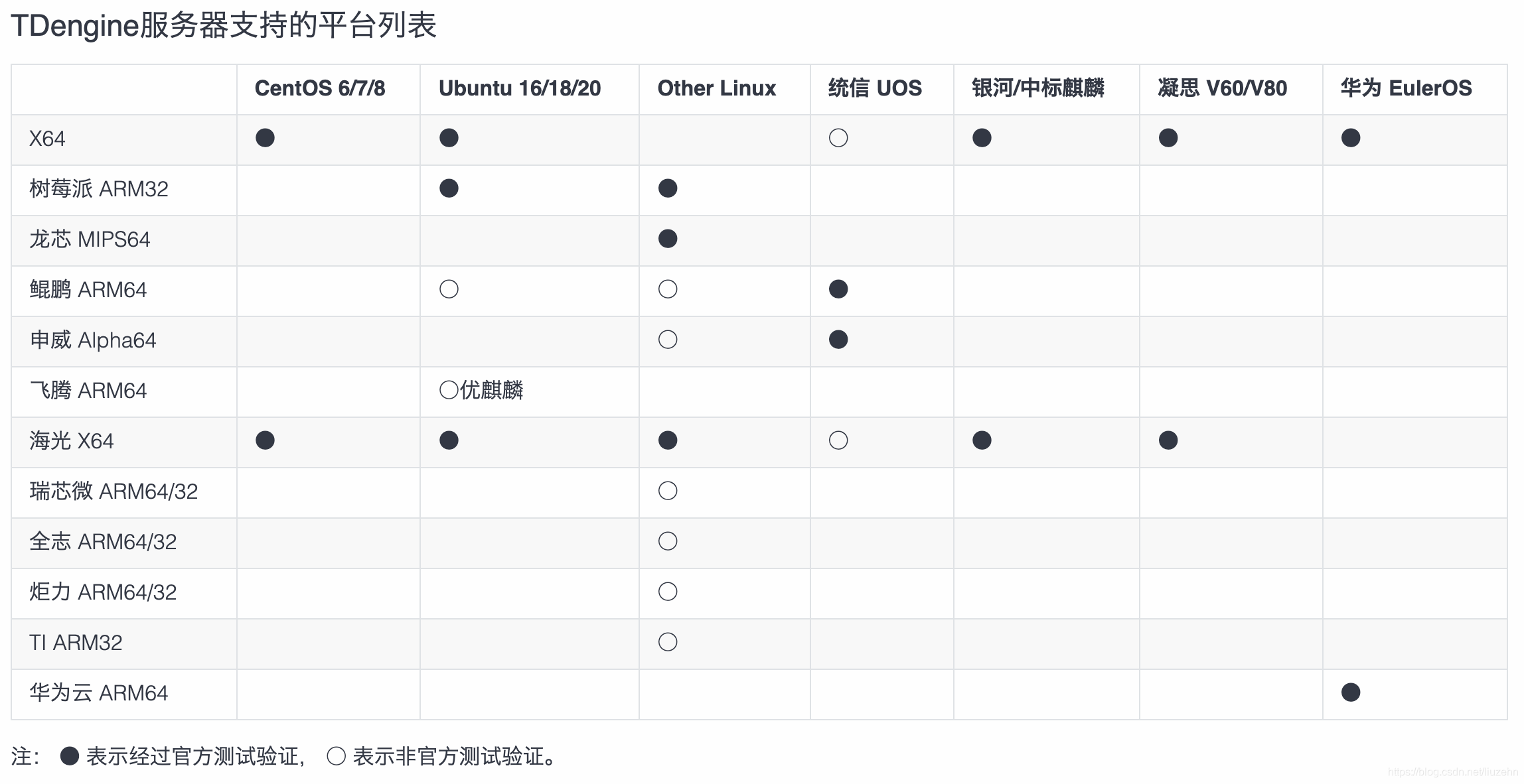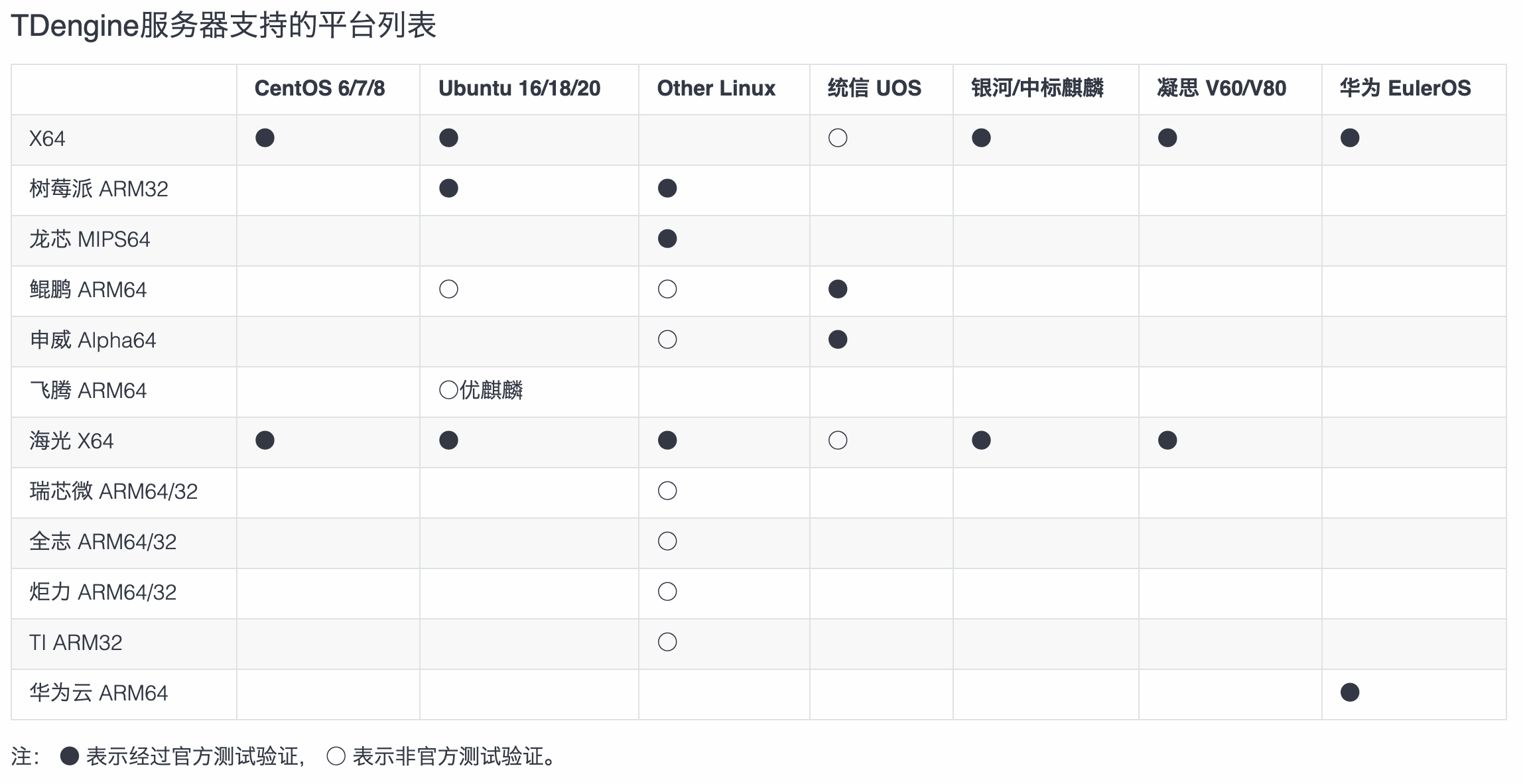 由上图可知,TDengine服务基本上覆盖了我们常用的平台和系统。