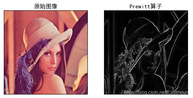 titles = [u'原始图像', u'Prewitt算子']