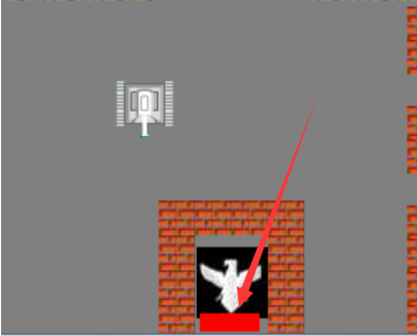 子弹撞击到普通墙后,会使得墙消失一块、图中画红箭头的地方时受到子弹攻击后的效果。墙体被破坏。