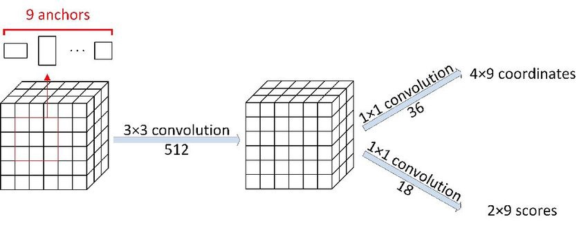 - RPN网络首先经过3x3卷积,再分别生成positive anchors(包含物体的边界框),和对应bounding box regression偏移量,然后计算出proposals(最有可能包含物体的区域);