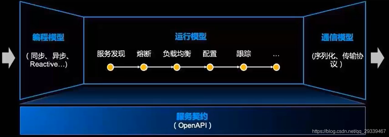- 类似于日志框架(log4j/logback)、健康检查、metrics、分布式追踪,这些在所有服务中都要解决的问题,叫做横切面问题(cross-cutting concerns)。微服务底座(微服务框架)就是用来帮助我们解决这些问题的