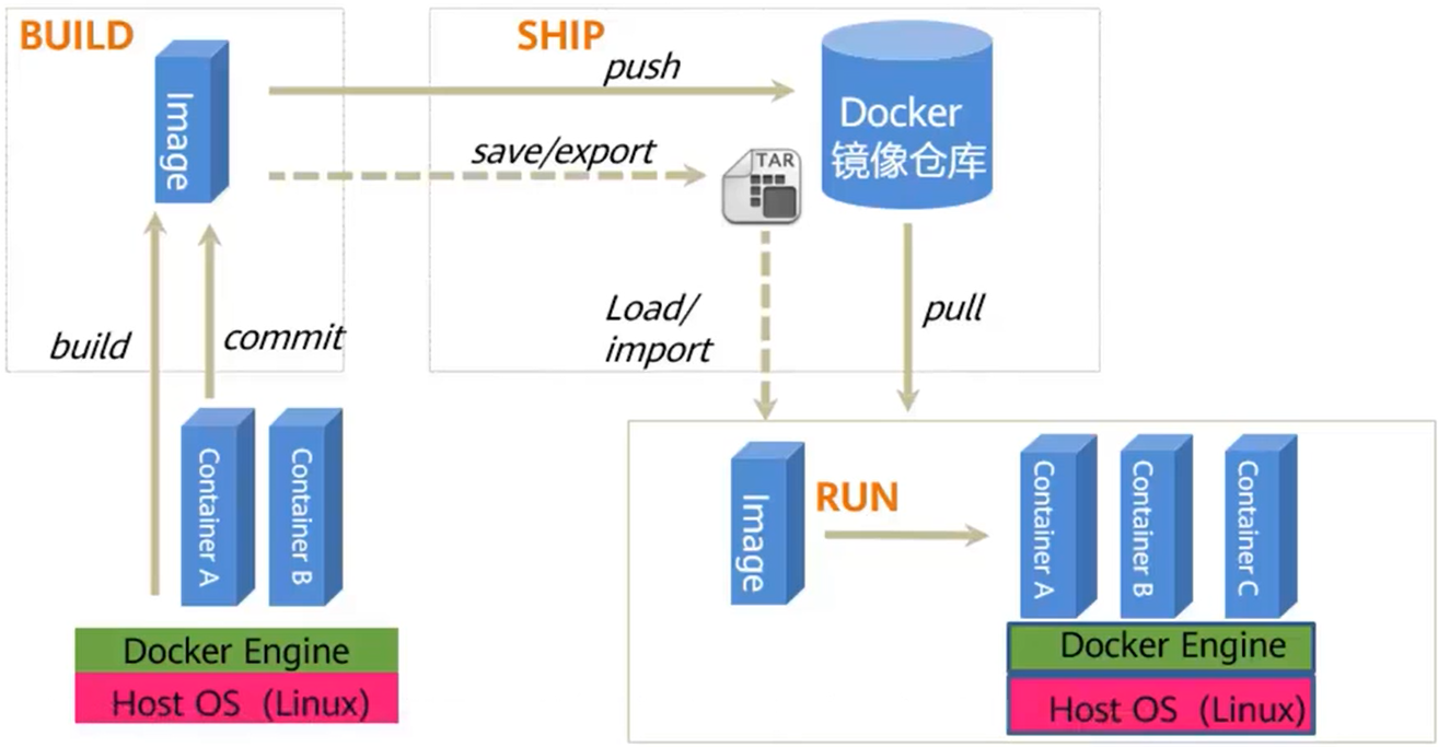 - 镜像提供了一种标准化运输或者发布方式,发布系统工作机制就是 build、ship、run