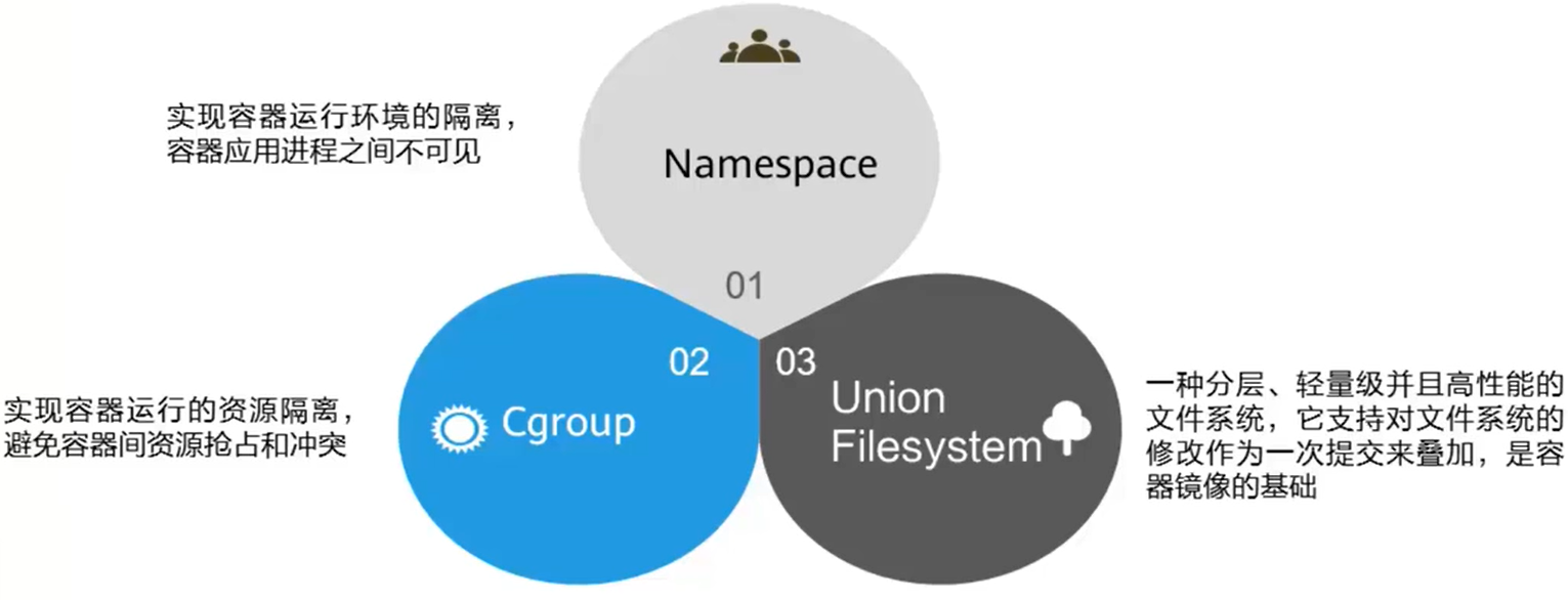 独立进程,通过 namespace 技术进行隔离,每个容器互相不可见,包括进程隔离、网络隔离、文件隔离 - Cgroup 是负责运行资源的隔离或者说独占,可以为每个容器指定资源数量,互相不侵占