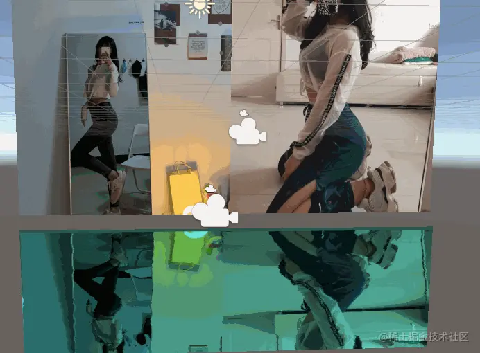 - 利用另外一个相机捕捉画面,翻转后放到下面。