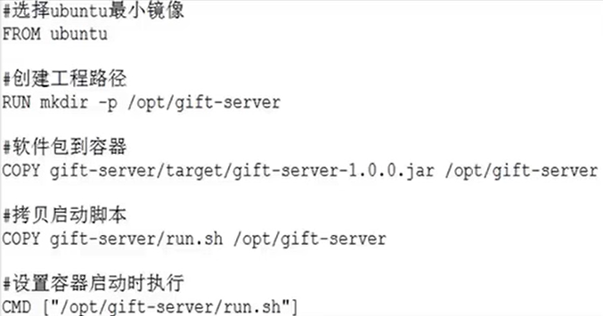 FROM指定一个基础镜像RUN运行命令COPY添加本地数据到容器CMD容器默认运行的命令