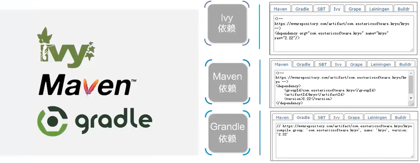- Java 开发圈中,目前最主流的有以下三个开发工具,依赖管理已经成为了项目构建自动化工具中的一个主要部分