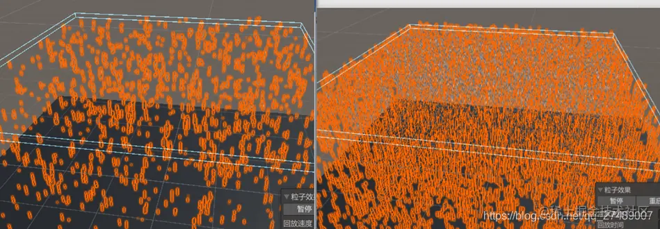 下图左侧是随单位时间产生的粒子数为1000 右侧是10000
