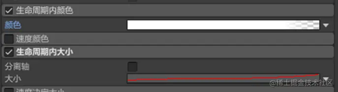 接着就是生命周期内颜色以及大小。颜色不变化,变化的是透明度,大小嘛,随心喽,看你心中的雨想要什么样的.