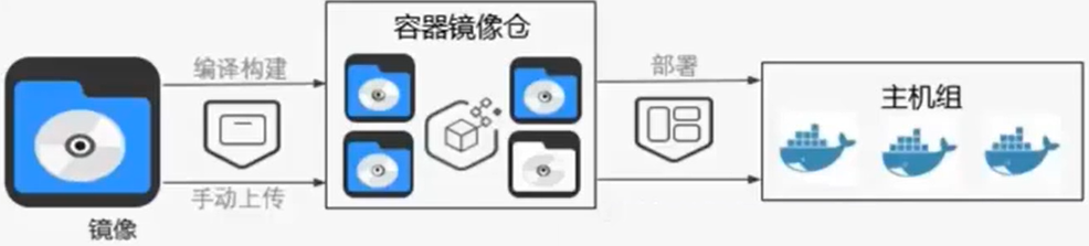 容器部署:用户通过手动上传、或者编译构建任务,将镜像保存到容器镜像仓中;部署任务将镜像上传到容器镜像集群中
