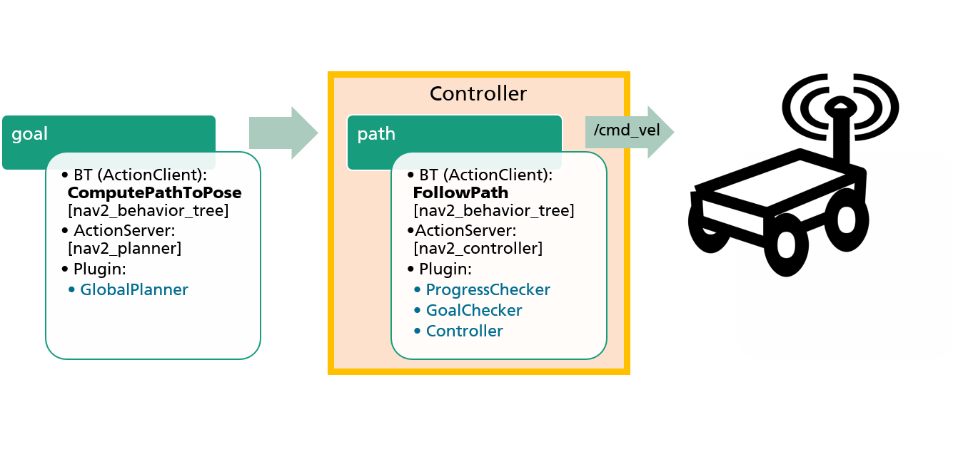 上一节,主要介绍导航功能包Nav2的规划部分,本节为控制部分: