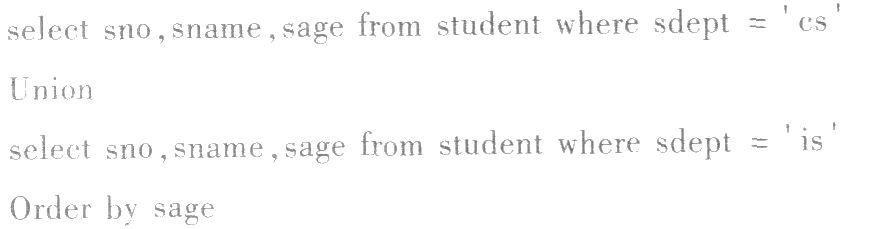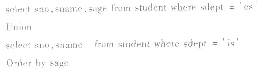 ④如果要对查询的结果进行排序,则ORDER BY子句应该写在最后一个查询语句之后,且排序的依据列应该是第一个查询语句中出现的列名。