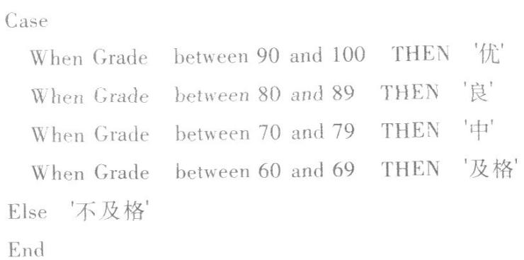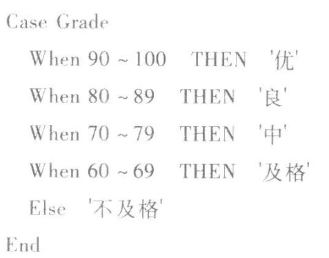 搜索CASE函数的各个WHEN子句的布尔表达式可以使用比较运算符,也可以使用逻辑运算符。