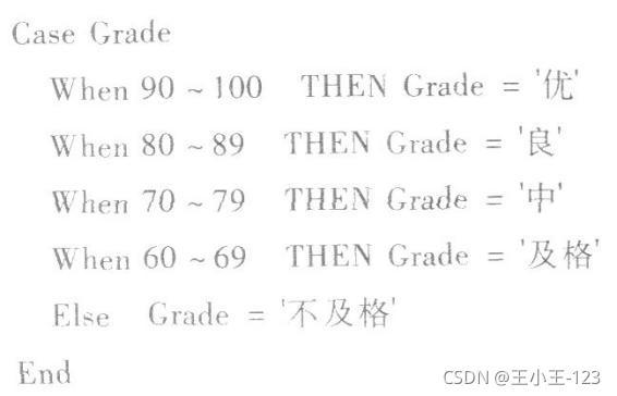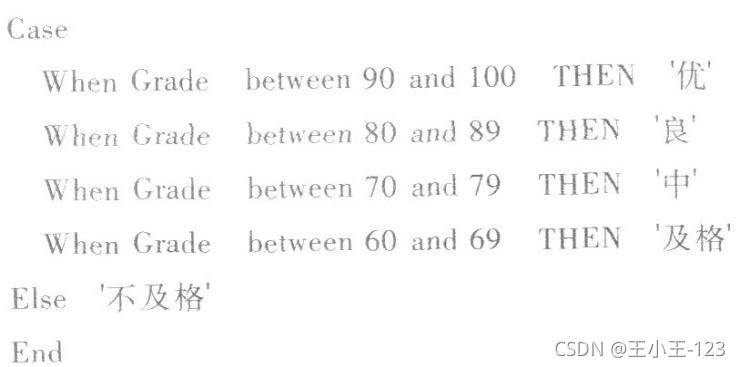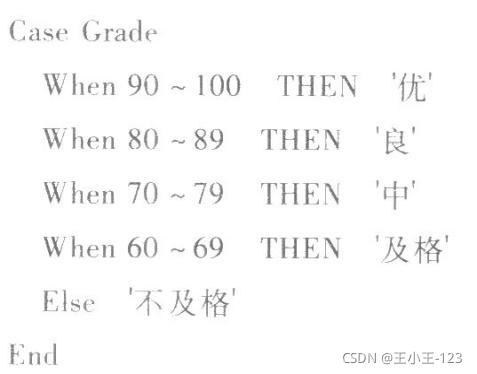 设SC表中记录成绩的列为:Grade,类型为int。若在查询成绩时,希望将成绩按“优”、“良”、“中”、“及格”和“不及格”形式显示,正确的Case函数是( )。