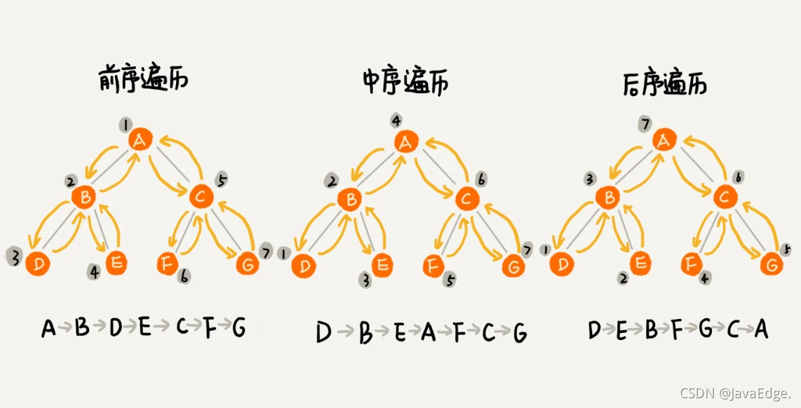 每个节点最多会被访问两次,所以遍历操作的时间复杂度,跟节点的个数n成正比,也就是说二叉树遍历的时间复杂度是O(n)。