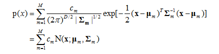 那么将上面公式推广到多变量的多元混合高斯分布,就是语音识别上使用的混合高斯模型,其联合概率密度函数的形式如下: