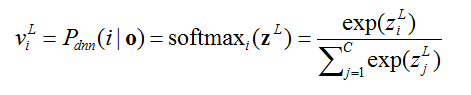 或者整流线性单元(Rectifier Linear Unit)ReLU(x)=max(0,x)。在语音识别上应用的DNN模型一般采用softmax将模型输出向量进行归一化,假设模型有 L 层,在特征向量为 O,输出分类数为 C,则第 i 类的输出概率为