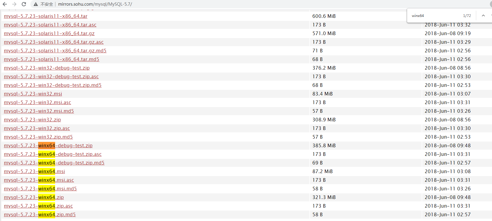 mysql搜狐镜像:http://mirrors.sohu.com/mysql/MySQL-5.7/