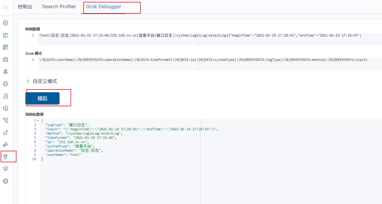 |test|日志-日志|2021-01-19 17:31:06|192.168.xx.xx|信息平台|接口日志|/system/LoginLog/selectLog|{"beginTime":"2021-01-19 17:28:41","endTime":"2021-01-19 17:28:43"}