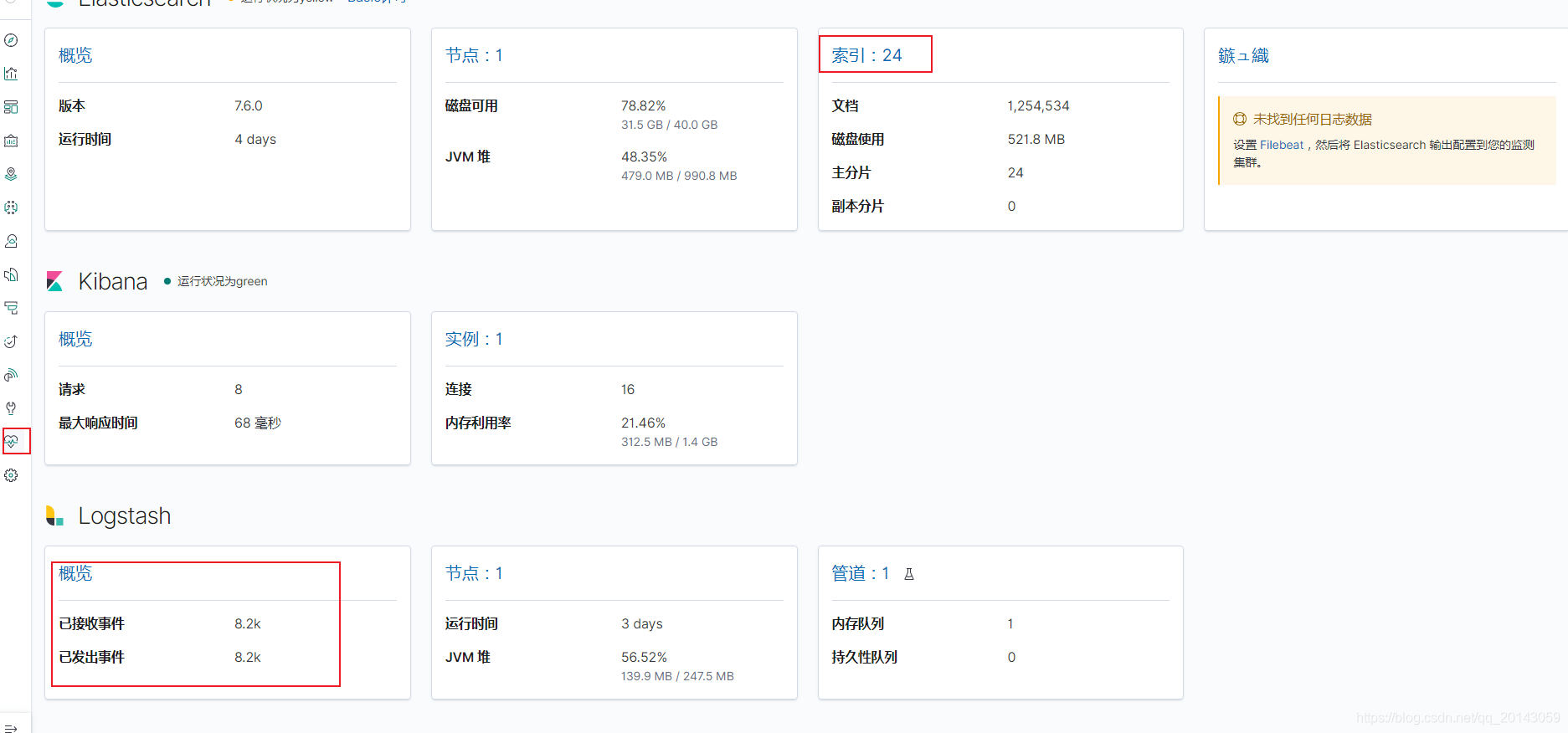 访问kibana 按照图中点击 查看索引是否多出来监控索引即可判断是否成功