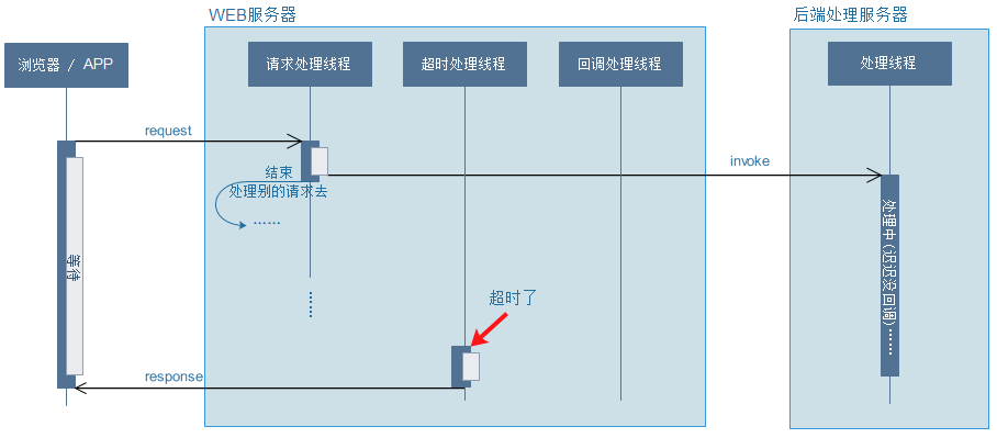 如果“长时间处理任务”一直没返回,那我们也不应该让客户端无限等下去啊,总归要弄个“超时”出来。如图: