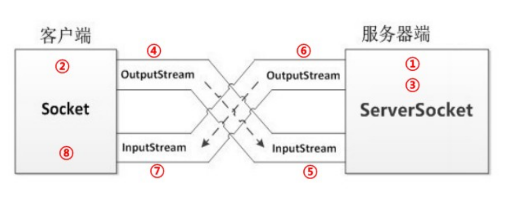 - 客户端 Socket 对象, 获取 OutputStream, 向服务端写出数据