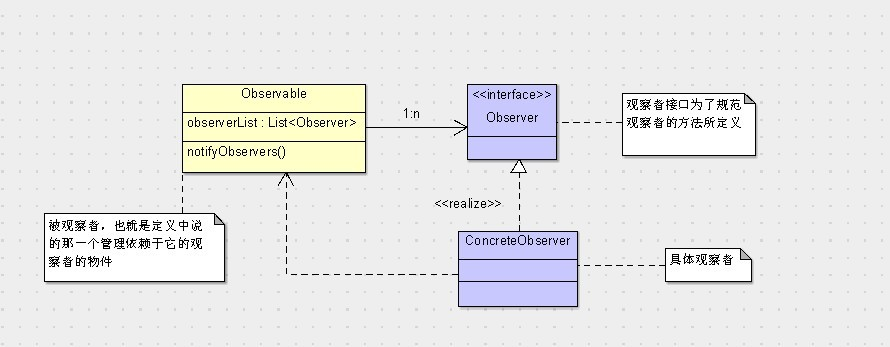 定义:定义对象间的一种一对多的依赖关系,当一个对象的状态发生改变时,所有依赖于它的对象都得到通知并被自动更新。