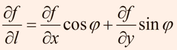 如果函数 z=f(x,y) 在点 P(x,y) 是可微分的, 那么, 函数在该点沿任一方向 L 的方向导数都存在, 且有: