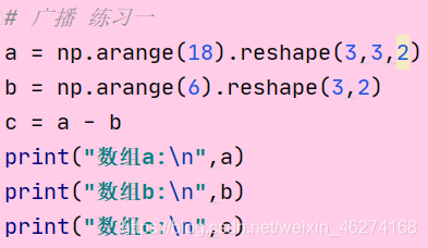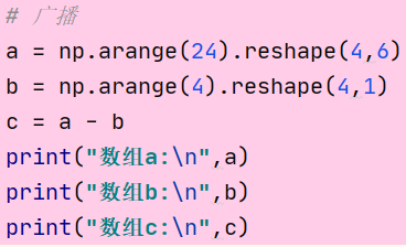 如果两个数组的后缘维度 ( trailing dimension, 即从末尾开始算起的维度 ) 的轴长度符或其中一方的长度为 1, 则认为它们是广播兼容的.广播会在缺失和 ( 或 ) 长度为 1 的维度上进行.