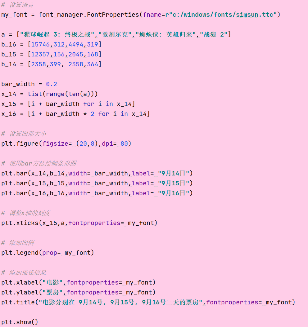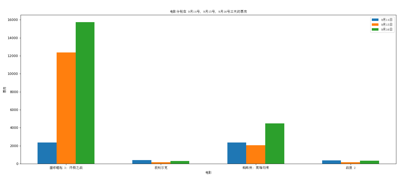 假设你知道了列表 a 中的电影分别在 9月14号, 9月15号, 9月16号三天的票房, 为了展示列表中电影本身的票房以及同其他电影的数据对比情况, 应该如何更加直观的呈现该数据?