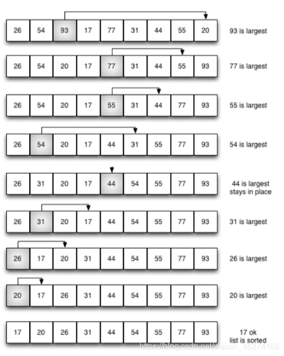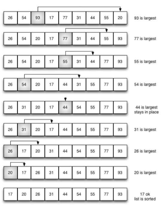 选择排序 ( Selection sort ) 是一种简单直观的排序算法. 它的工作原理如下. 首先在未排序序列中找到最小 ( 大 ) 元素, 放到排序序列的起始位置. 然后, 再从剩余未排序元素中继续寻找最小 ( 大 ) 元素, 然后放到已排序序列的末尾, 直到所有元素均排序完毕.