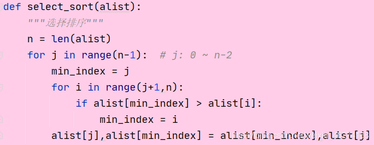 选择排序的主要优点与数据移动有关, 如果某个元素位于正确的最终位置上, 则它不会被移动. 选择排序每次交换一对元素, 它们当中至少有一个将被移动到其最终位置上, 因此对 n 个元素的表进行排序总共进行至多 n-1 次交换. 在所有的完全依靠交换区移动元素的排序方法中, 选择排序属于非常好的一种.