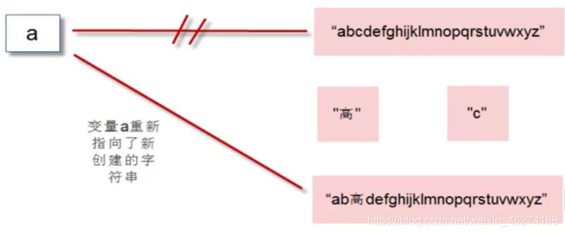 调用 replace() 方法时, 整个过程中, 实际上我们是穿件了新的字符串对象, 并指向了变量 a, 而不是修改了以前的字符串.