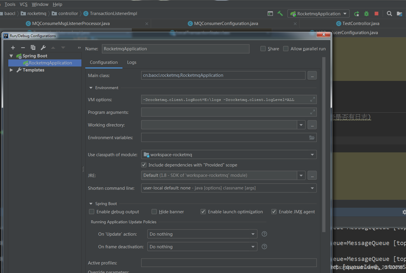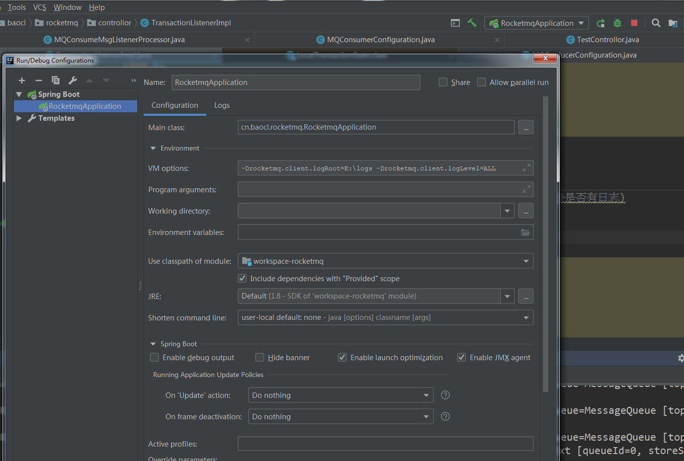 -Drocketmq.client.logRoot=E:\logs -Drocketmq.client.logLevel=ALL
