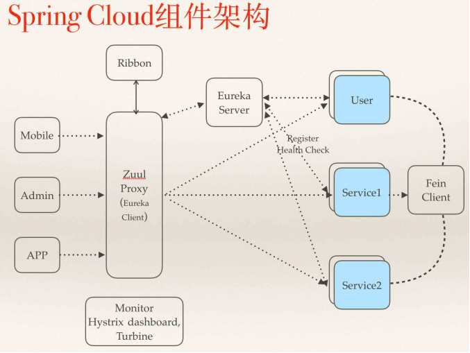 Zuul,网关,所有的客户端请求通过这个网关访问后台的服务。他可以使用一定的路由配置来判断某一个URL由哪个服务来处理。并从Eureka获取注册的服务来转发请求。