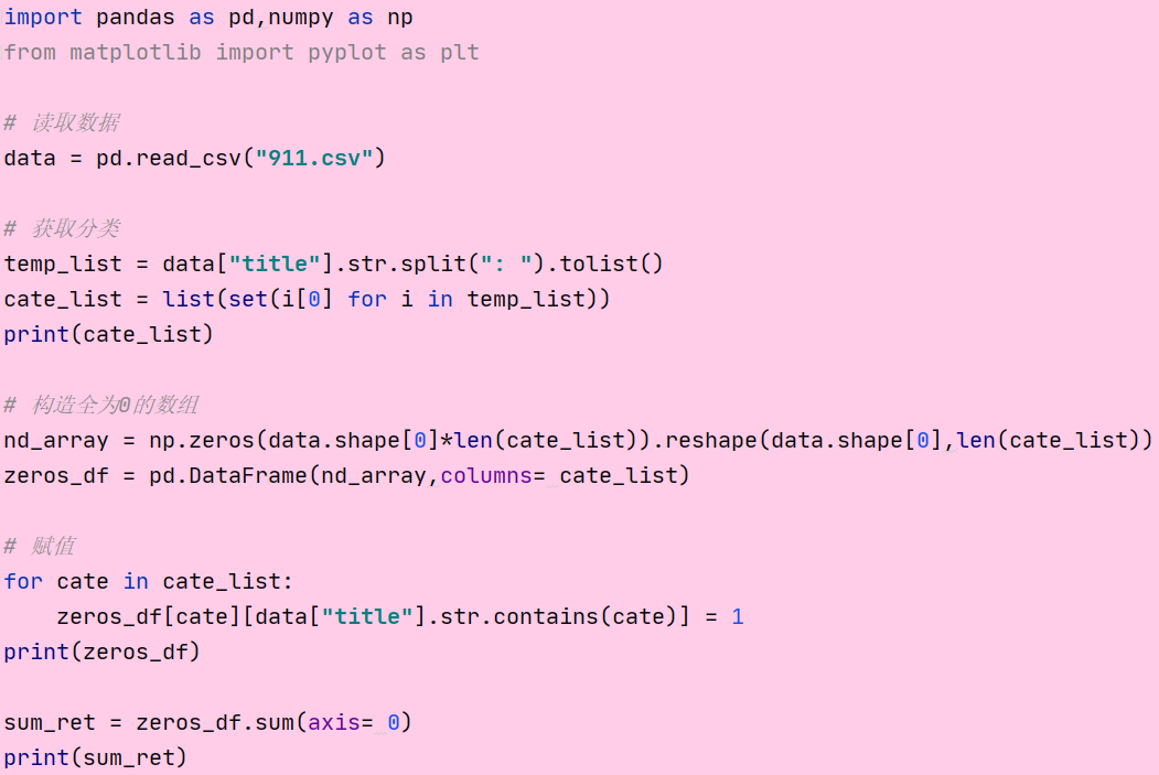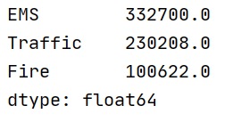 现在我们有 2015 到 2017 年 25 万条 911 的紧急电话的数据, 请统计出这些数据中不同类型的紧急情况的次数.
