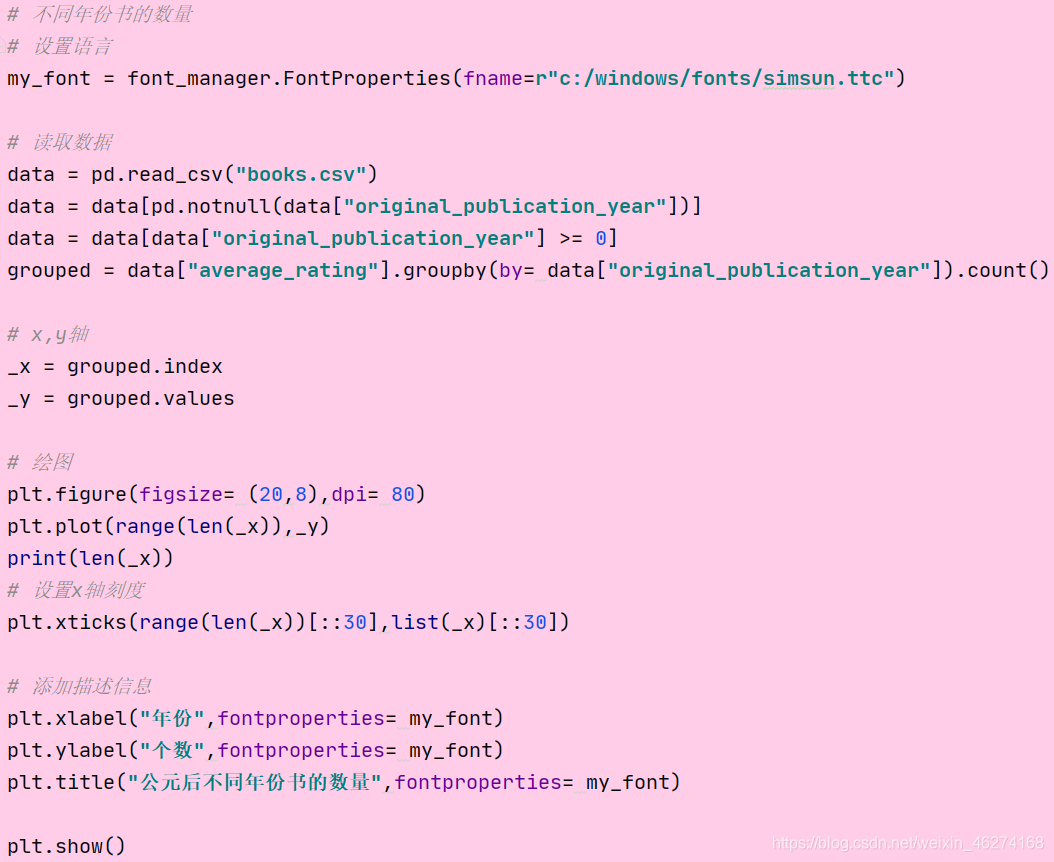 1. 不同年份书的数量