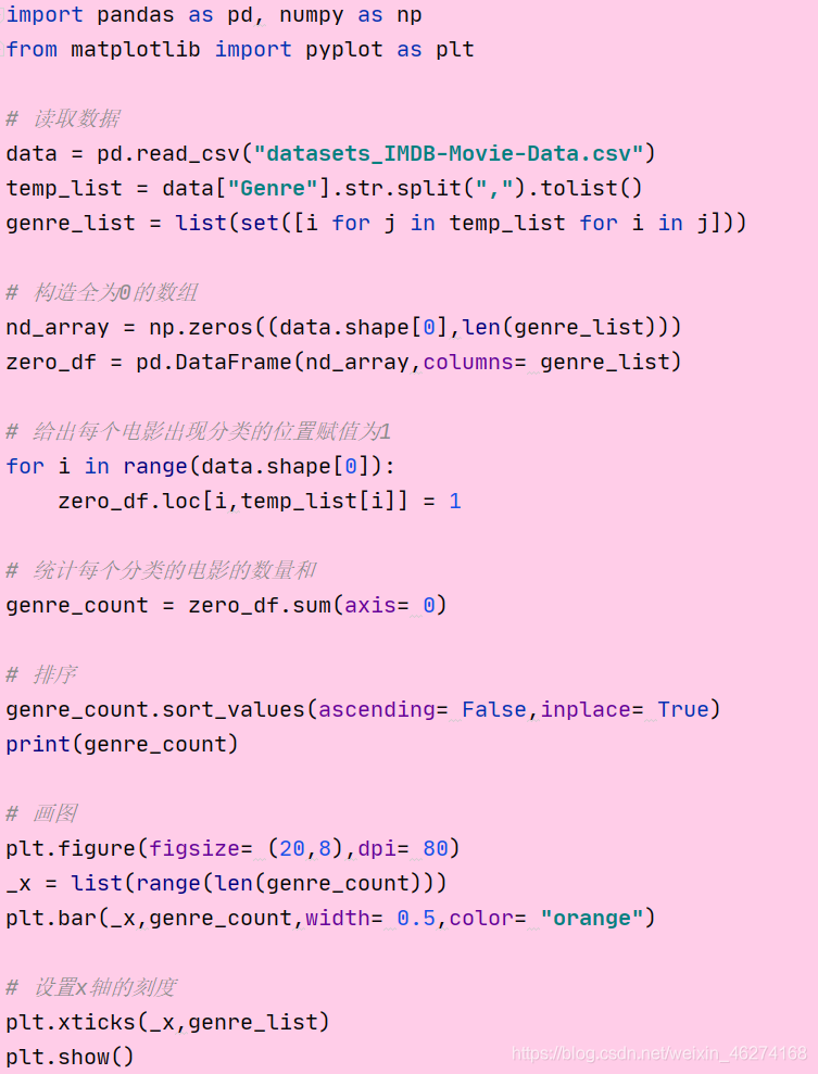 对于这一组电影数据, 如果我们希望统计电影分类 ( genre ) 的情况, 应该如何处理数据?