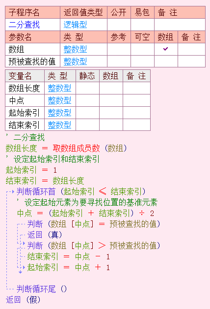 易语言 二分查找