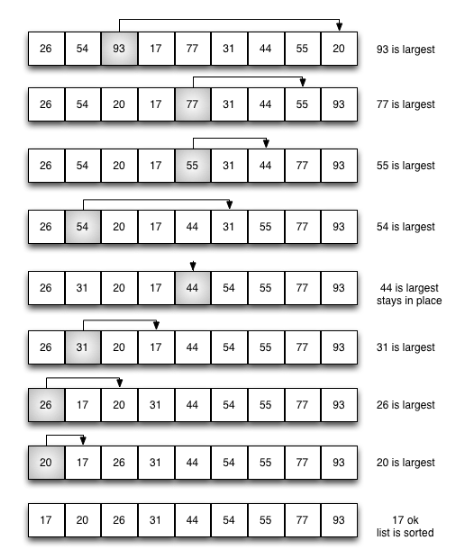 选择排序的主要优点与数据移动有关。如果某个元素位于正确的最终位置上,则它不会被移动。选择排序每次交换一对元素,它们当中至少有一个将被移到其最终位置上,因此对n个元素的表进行排序总共进行至多n-1次交换。在所有的完全依靠交换去移动元素的排序方法中,选择排序属于非常好的一种。
