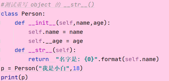 object 有一个 __str__() 方法, 用于返回一个对于 "对象的描述", 对于内置函数 str() 经常用于 print() 方法, 帮助我们查看对象信息. __str__() 可以重写.