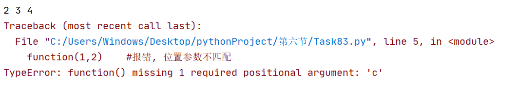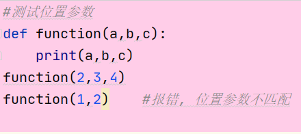 函数调用时, 实参默认按照位置顺序传递, 需要个数和形参匹配. 按位置传递参数, 我们称为: "位置参数".