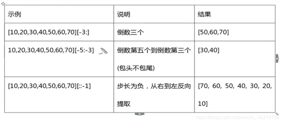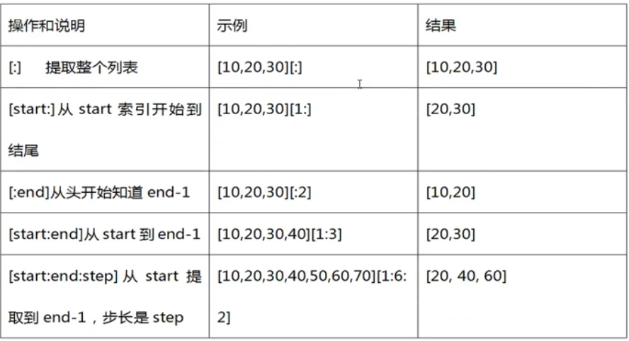 [起始偏移量start: 终止偏移量 end : 步长 step]