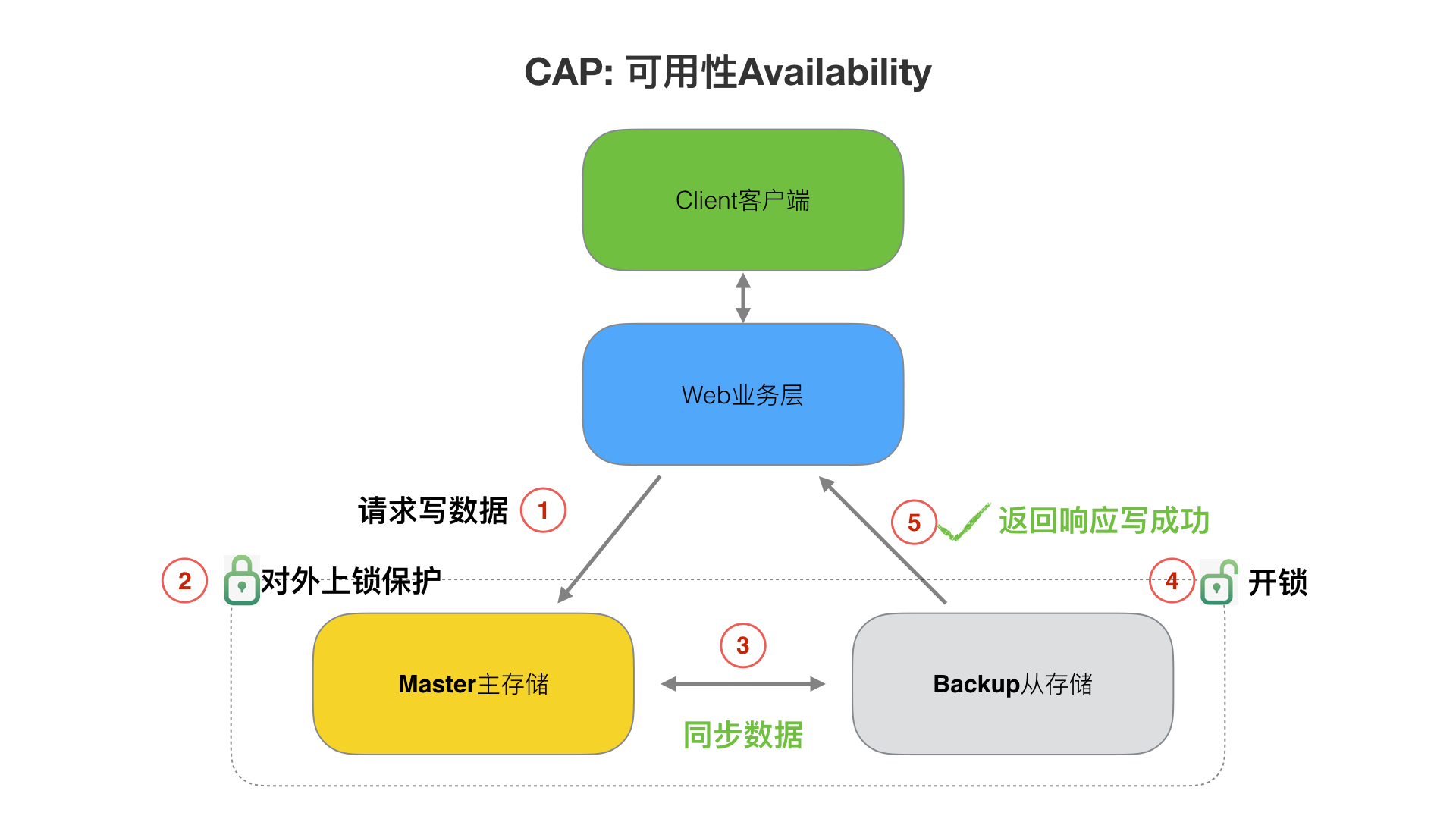 - 为了保证数据一致性会对资源暂时锁定,待数据同步完成释放锁定资源。