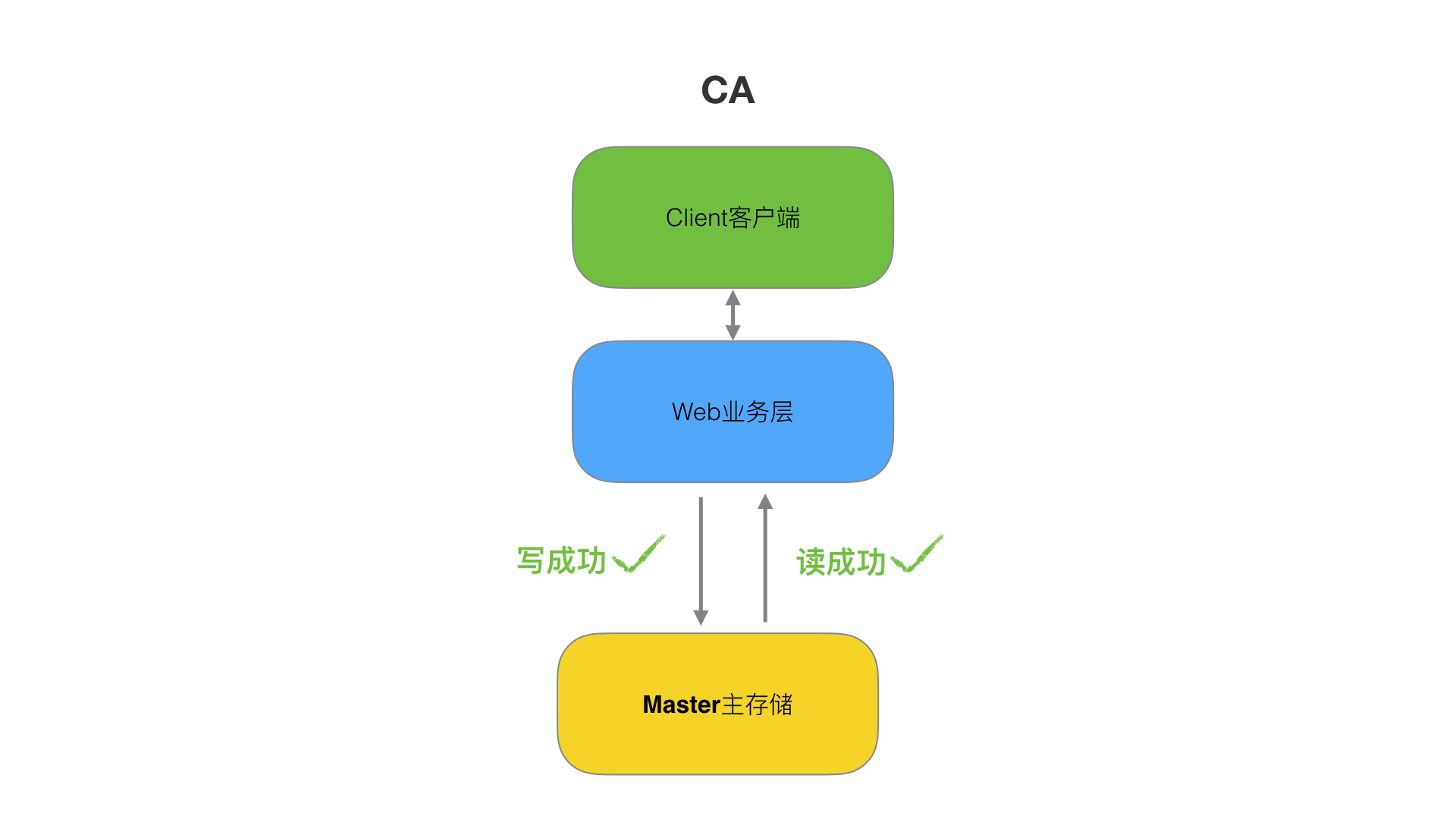 - Web业务层向主Master写数据库成功,从Backup读数据也成功。