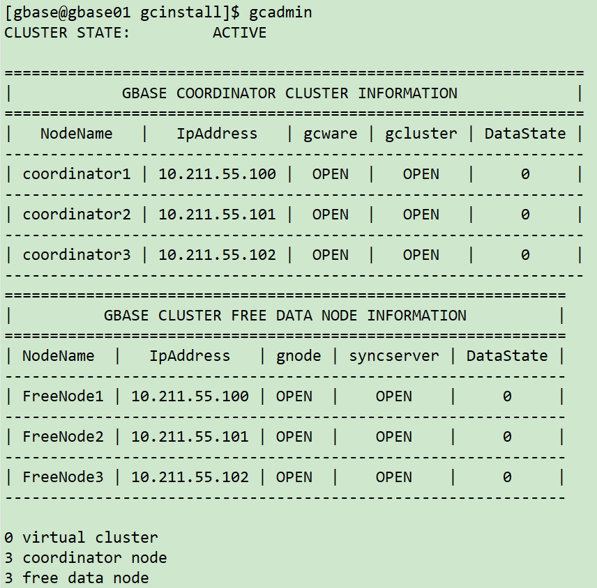 📢 注意:IP地址根据实际环境进行修改,dbaPwd 是 gbase 账户的密码,rootPwd 是 root 账户的密码。