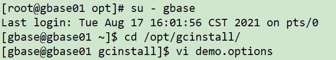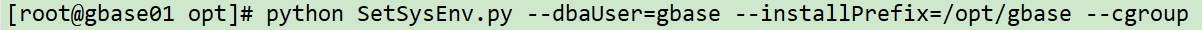 python SetSysEnv.py --dbaUser=gbase --installPrefix=/opt/gbase --cgroup