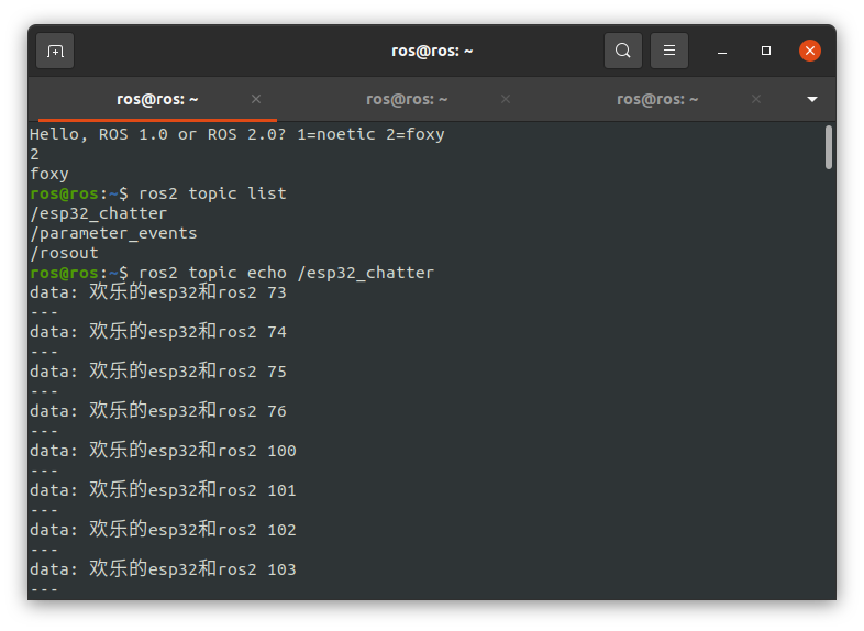 sprintf(msg->data, "欢乐的esp32和ros2 %d", cnt++);