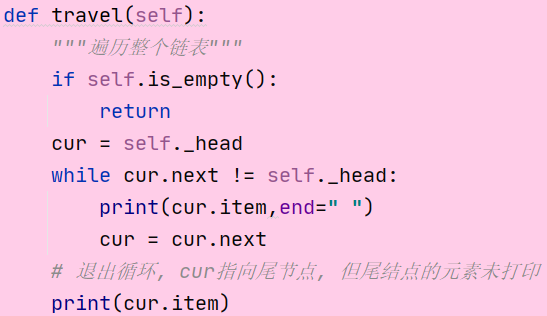 travel() 遍历整个链表