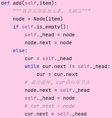 add(item) 链表头部添加元素